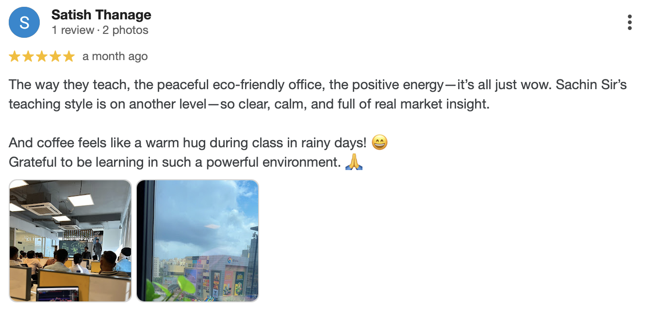 Under the guidance of Mr.Sachin Dalvi sir, one of the most recognized figures in trading mentorship, you’ll gain hands-on exposure to price action, smart money concepts (SMC), psychology, and live market behavior.